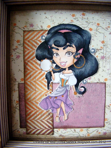 The digi I used is Esmeralda Honey, from the Hunchback of the Notre Dame. Perfect digi for me, because I am a total Disney ADDICT!! Perfect challenge, I had so much fun creating this!!